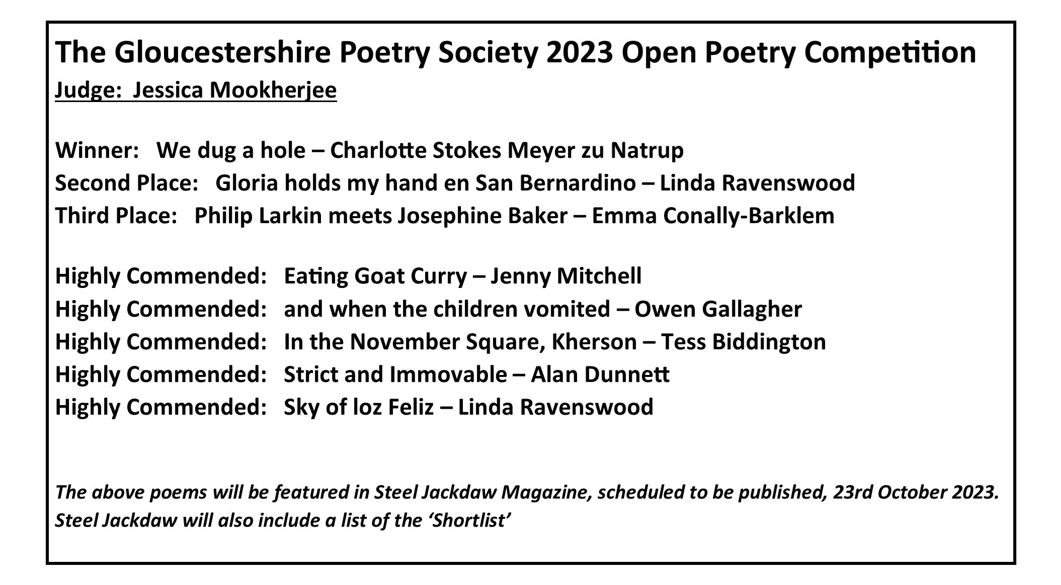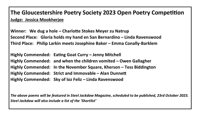 Jessica Mookherjee's Judge's comments on the Glos Open Poetry Competition are now in: